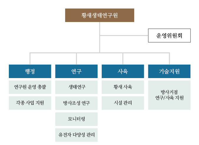 연구 및 사업 총괄 황새 생태 및 번식 연구 황새 서식지, 방사거점 조성 연구 개체군 유전적 다양성 관리 및 연구 대외 협력 연구 |